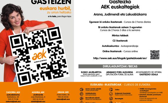 Gasteizko AEKn euskara ikasteko hainbat ikastaro aurkituko duzue: Egunero 2 orduz aritzeko aukera, astean hiru eguneko modulazioa, larunbateko taldeak, autoikaskuntza, mintza…. Begiratu gure informazio orria eta aukeratu ondoen datorkizuna: En Gasteizko AEK encontrareis varias opciones para aprender euskera: cursos de 2 horas al día, modulación de tres días por semana, […]
