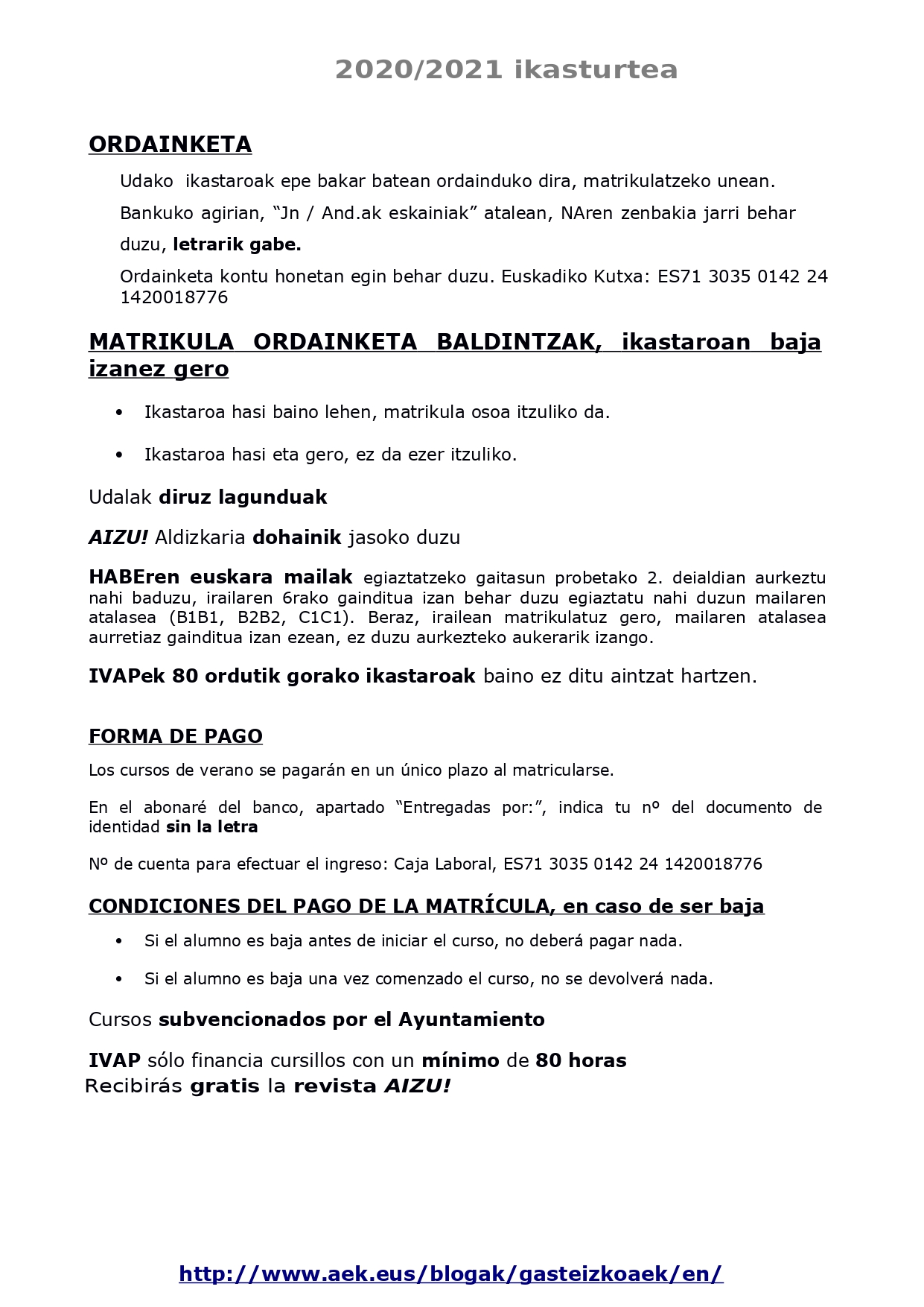 osokoak), online bidezko klaseak, autoikaskuntza, ikastaro trinkoak, mintza taldeak eta