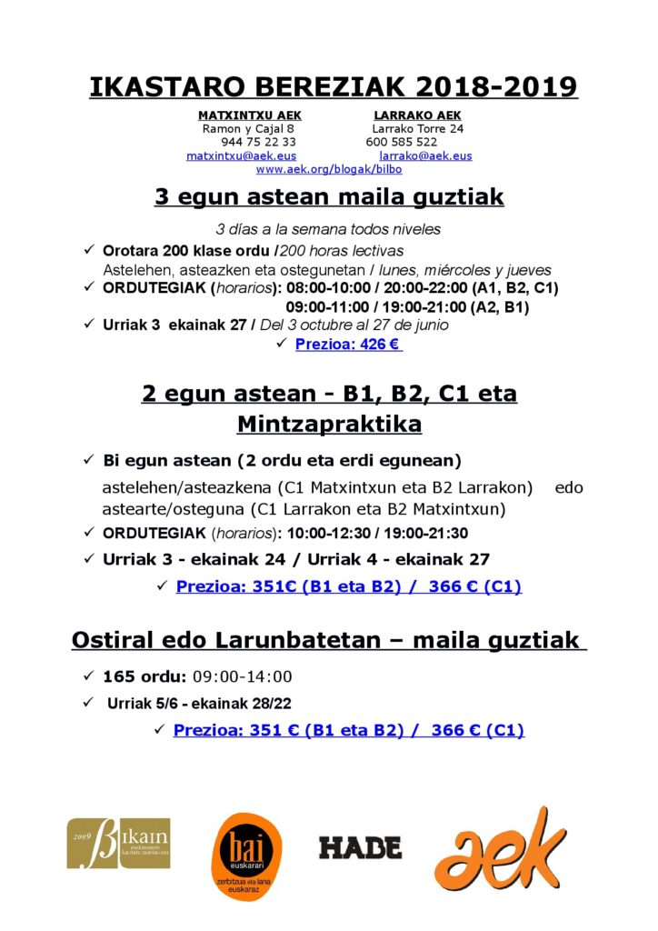 Euskara ikastaroetarako MATRIKULA EGITEKO AZKEN EGUNAK! HABE azterketak 2. deialdia – AHOZKOaren LANKETARAKO ikastaro berezia ORDUTEGI eta MAILA GUZTIAK / Todos los […]