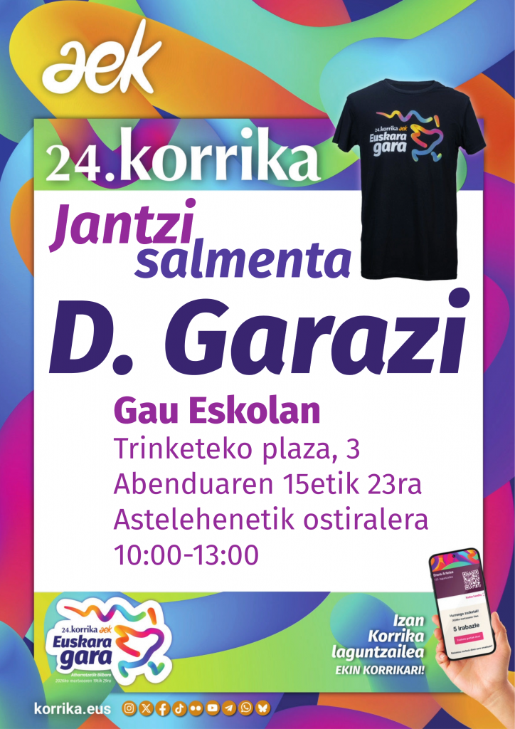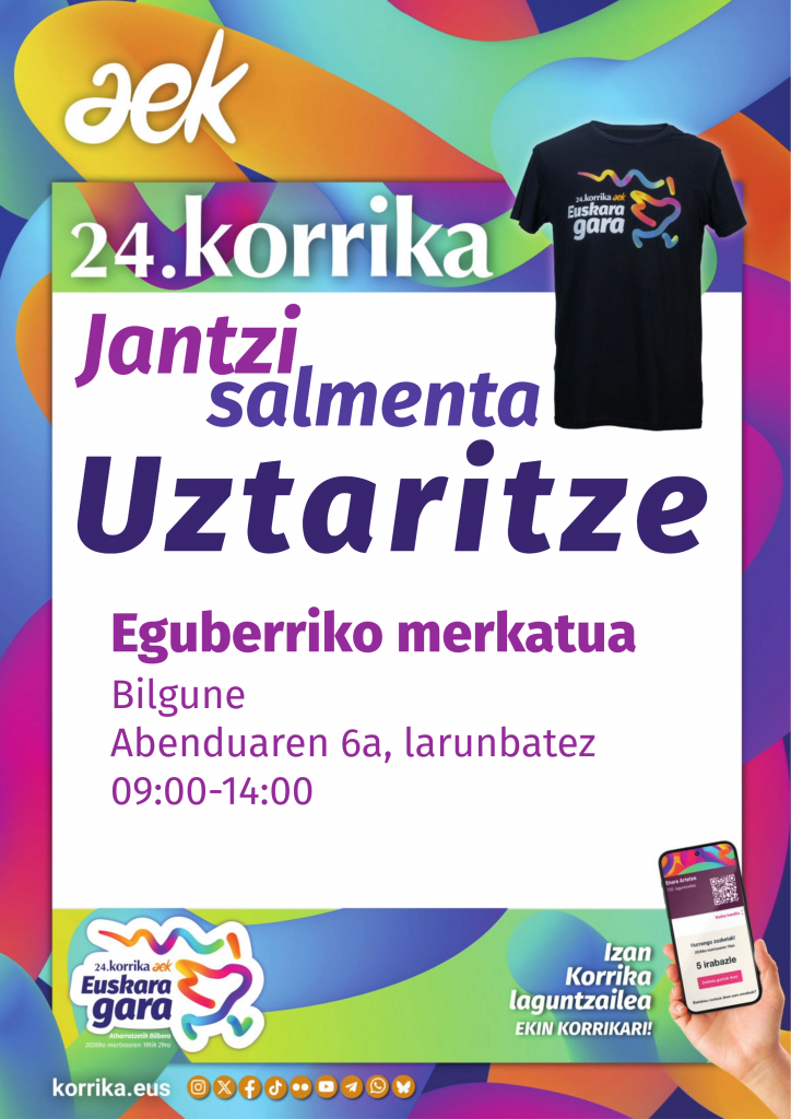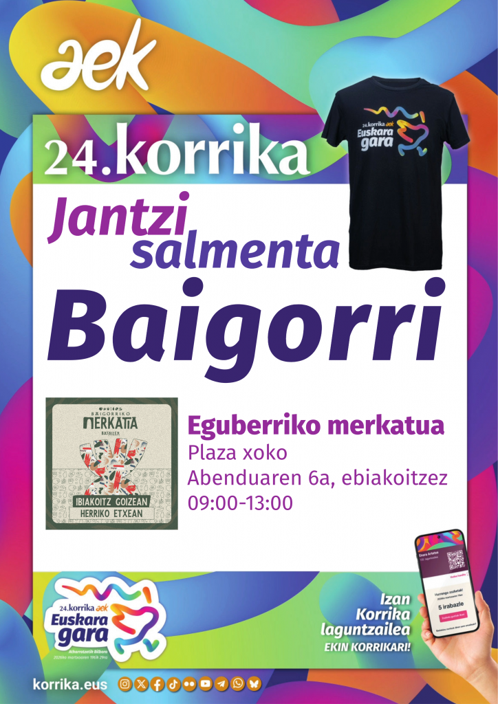 Published 2025-11-17 24.KORRIKA 24.KORRIKA Atharratzetik abiatuko da 2026ko martxoaren 19an eta Bilbora helduko martxoaren 29an, “Euskara gara” lelopean eta Errigora ekimena omenduko du. KORRIKA Euskal Herri osoan zehar egiten den euskararen […]