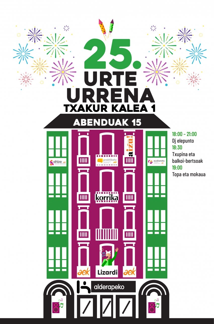 Bilboko Zazpi Kaleetan AEKren hainbat zerbitzu, Lizardi euskaltegia eta Kalderapeko kulturgunea biltzen dituen eraikinaren 25. urtemuga ospatuko da abenduaren 15ean, Txakur kaleko 1. atariko egoitzan. Urteurren jaiaz gozatzeaz gain, kulturgunea dinamizatzea da asmoa, Bilboko AEK-k, eta AEK-k oro har, Bilbon izan behar duten erreferentzia eta ikusgarritasuna azpimarratzeko.