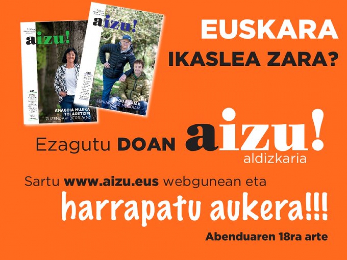 AIZU! ezagutu nahi? Gure aldizkariaren ale bat (2024ko urtarrilekoa) doan eskuratzeko aukera eskainiko diogu hala nahi duen euskara ikasle orori.