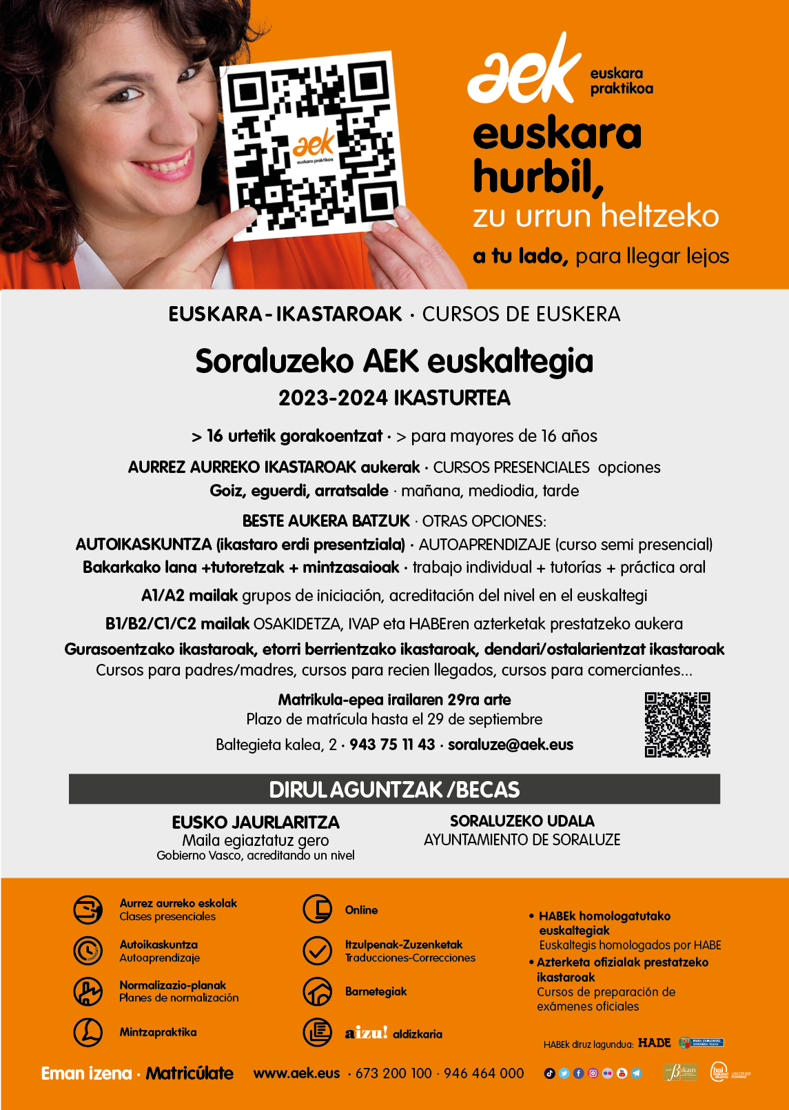 Bulego ordutegia (Irailean): Astelehenetik ostegunera : 10:00-13:30 eta 16:00-19:00. Ostiraletan: 10:00-13:30